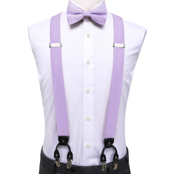 Purple Solid Y Back Brace Clip-on Men's Suspender with Bow Tie Set