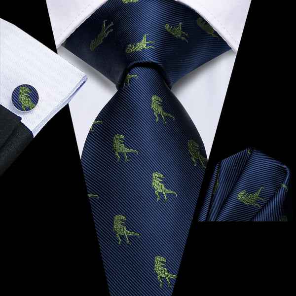 Ties2you Silk Necktie Deep Blue Fun Novelty Dinosaur Casual Mens Tie Set