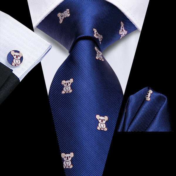 Ties2you Silk Necktie Navy Blue Fun Novelty Bears Mens Tie Set