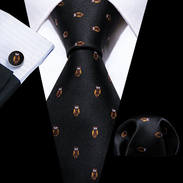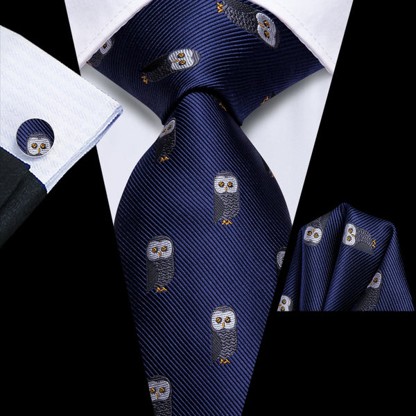 Ties2you Silk Necktie Dark Blue Fun Novelty Owls Casual Mens Tie Set