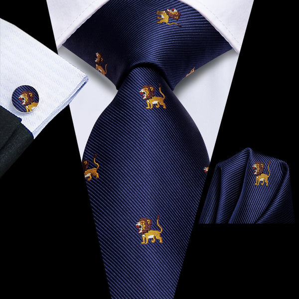 Navy Blue Novelty Deer Men's Necktie Hanky Cufflinks Set