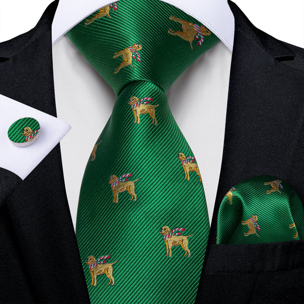 Green Yellow Novelty Dogs Men's Necktie Pocket Square Cufflinks Set