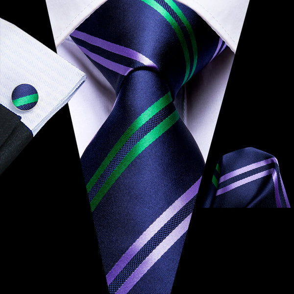 Ties2you Silk Necktie Dark Blue Green Striped Mens Casual Tie Set