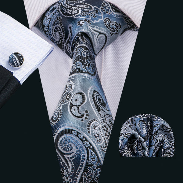 Gradient Brown Blue Paisley Tie Pocket Square Cufflinks Set