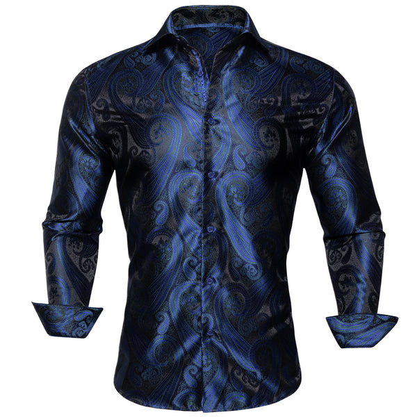 Ties2you Mens Royal Blue Western Shirt Silk Black Paisley Long Sleeve Button Down Shirt