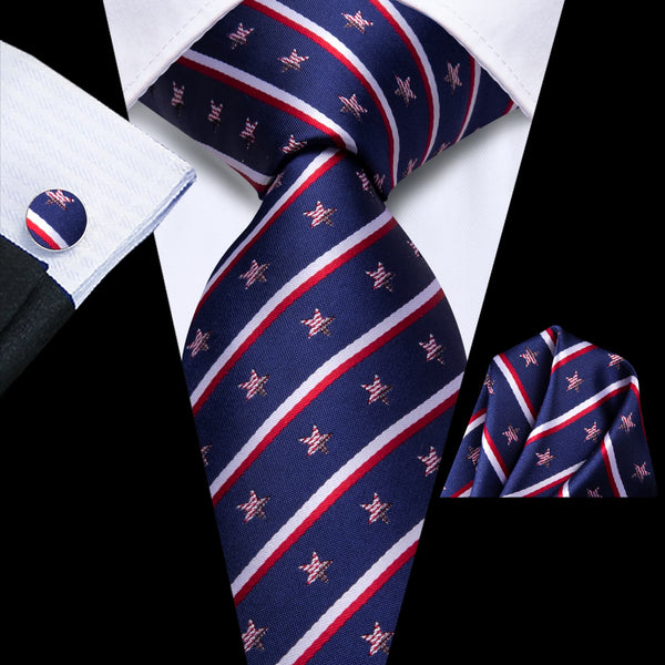 Ties2you Striped Tie Navy Blue White Silk Men's Tie Hanky Cufflinks Set
