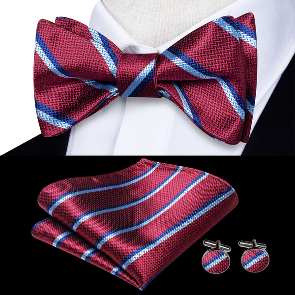 Package including Self-tied Bowtie+Pocket Square+CufflinksRegular Size: 4.33 x 2.36 inches (11 x 6 cm); Handkerchief size: 9 x 9 inches (23 x 23 cm)Self-tied Bow Tie: You have to tie...