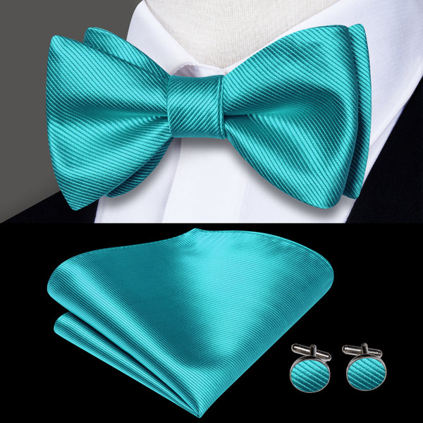 Ties2you Teal Blue Bowtie Pre-tied Solid Tuxedo Bow Tie Pocket Square Cufflinks Set