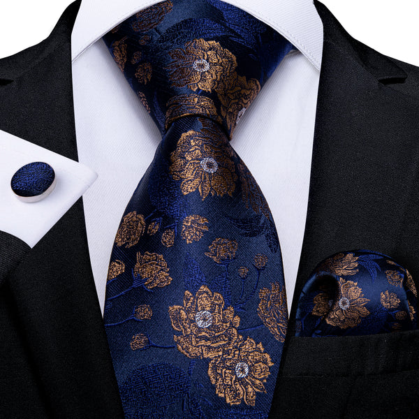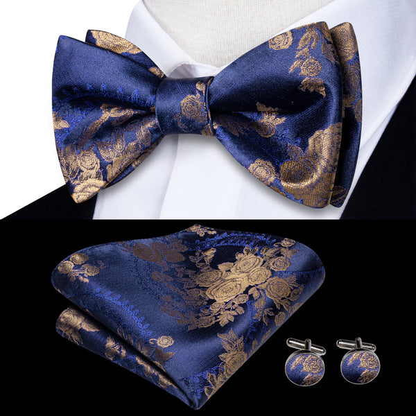 Ties2you Navy Blue Floral Bowtie Self-tie Formal Bow Tie Pocket Square Cufflinks Set