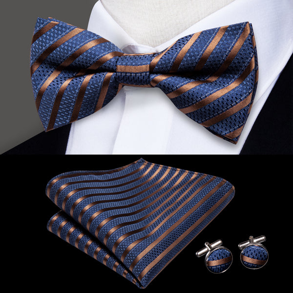Ties2you Striped Pre-tied Bow Tie Navy Blue Formal Bowtie Handkerchief Cufflinks Set