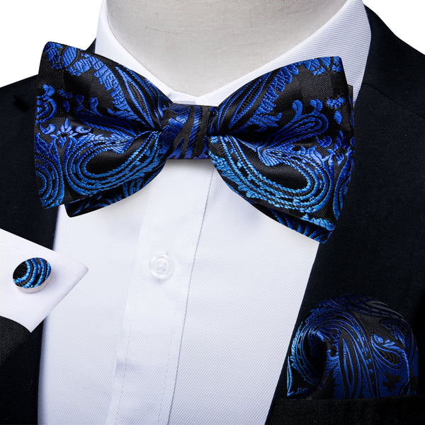 Ties2you Men's Sky Blue Paisley Bow Tie Silk Pre-tied Bowtie handkerchief Cufflinks Set
