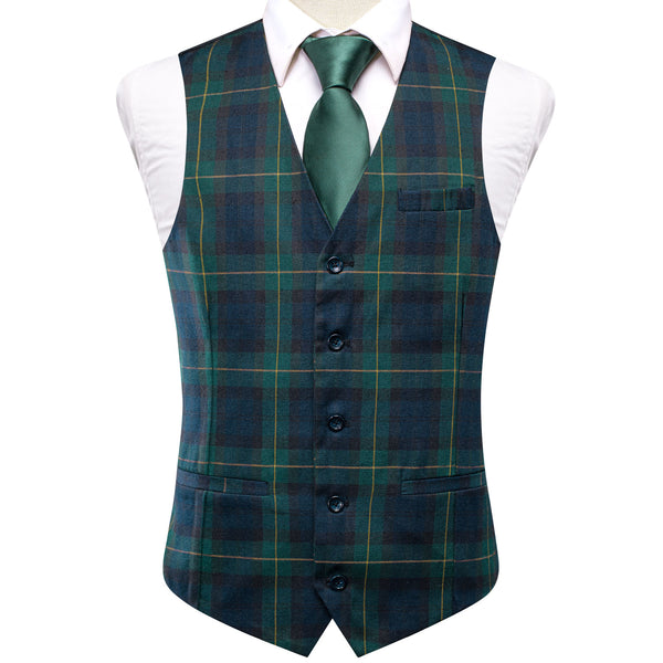 Green Blue Christmas Style Plaid Men's Tie Handkerchief Cufflinks Set