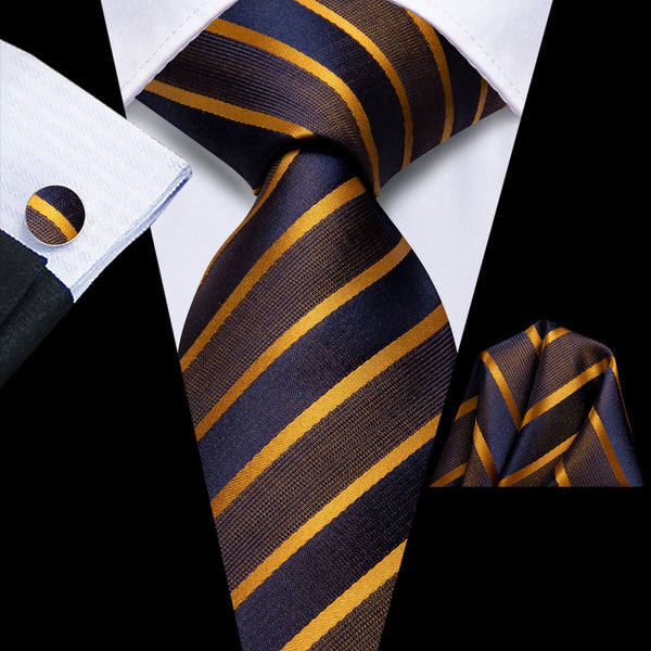 Ties2you Easy-pull Tie Deep Blue Brown Striped Men's Silk Tie Set