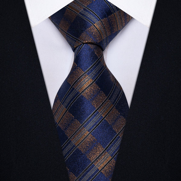 Ties2you Silk Tie Pecan Brown Plaid Men's Tie Handkerchief Cufflinks Set