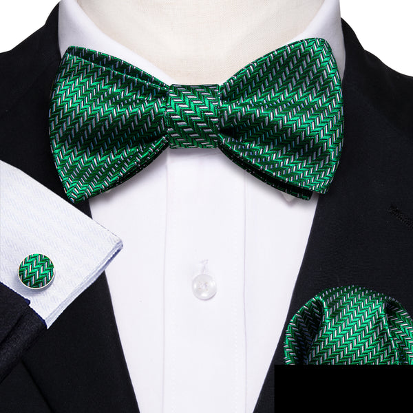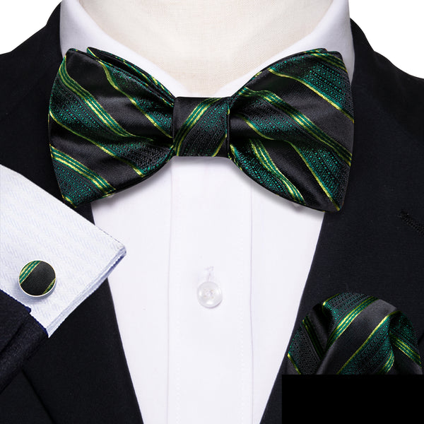 Apple Green Striped Self-tied Bow Tie Pocket Square Cufflinks Set