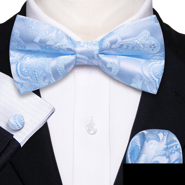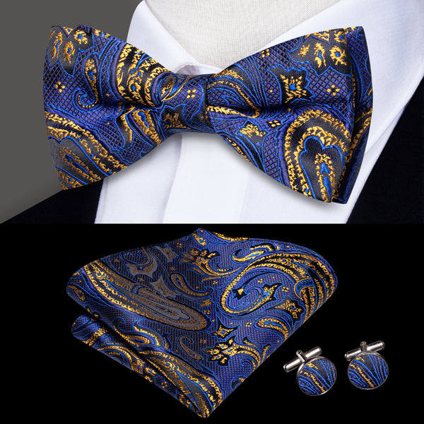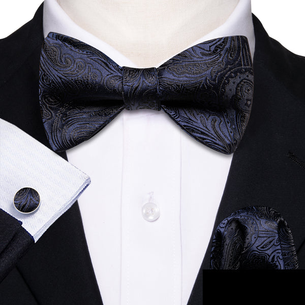 BlackBlue Paisley Men Pre-tied Bowtie Pocket Square Cufflinks Set