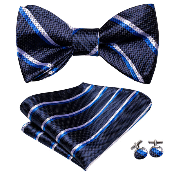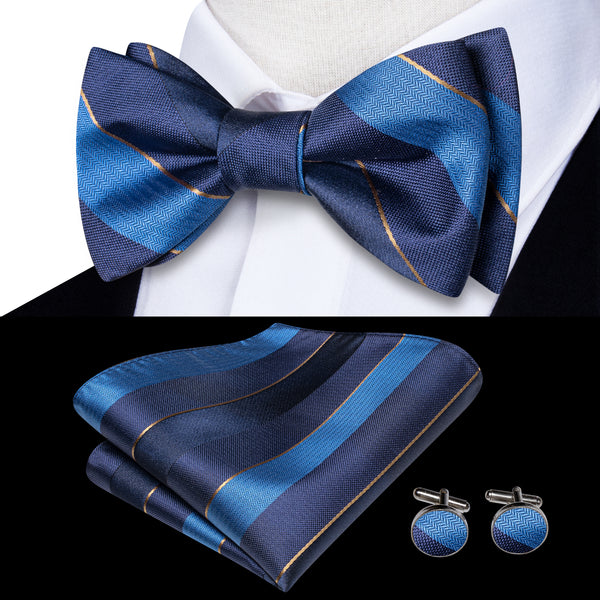 Blue Gradient Striped Self-tied Bow Tie Pocket Square Cufflinks Set
