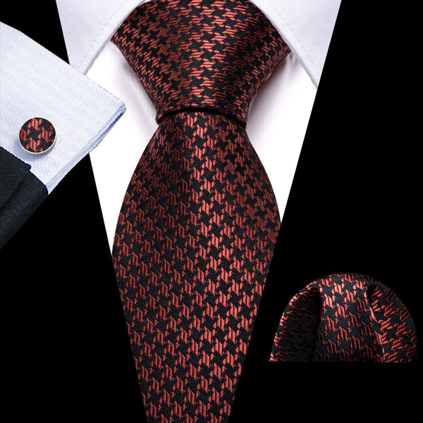 Red Green Novelty Silk Tie Pocket Square Cufflinks Set