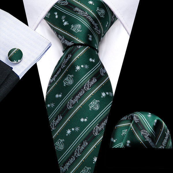 Black Green Christmas Tree Novelty Men's Tie Handkerchief Cufflinks Set