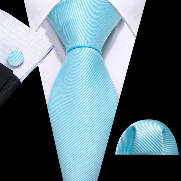 Sky Blue Striped Men's Necktie Hanky Cufflinks Set