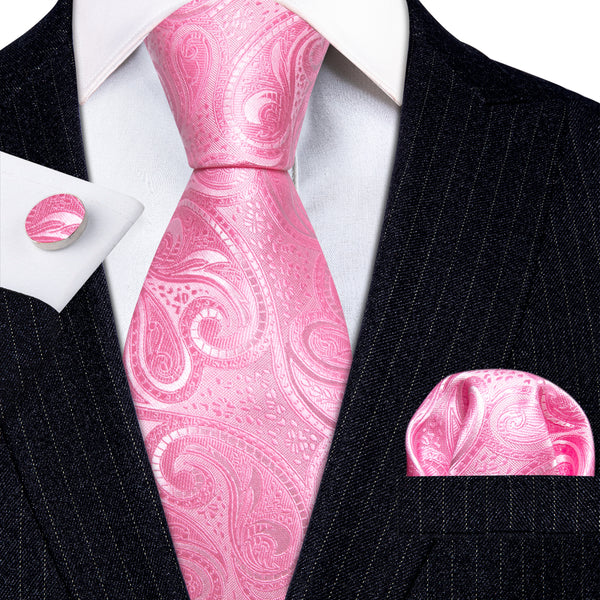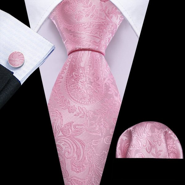 LightPink Lemonade Pink Paisley Men's Necktie Pocket Square Cufflinks Set