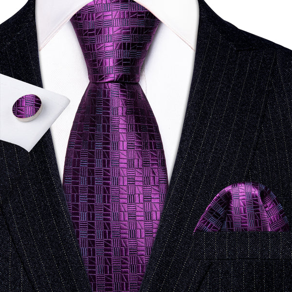 Black Purple Blue Striped Men's Necktie Hanky Cufflinks Set