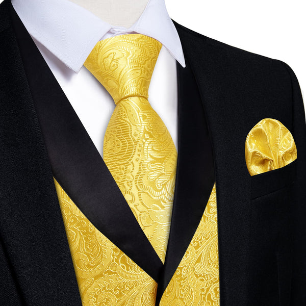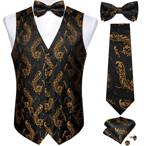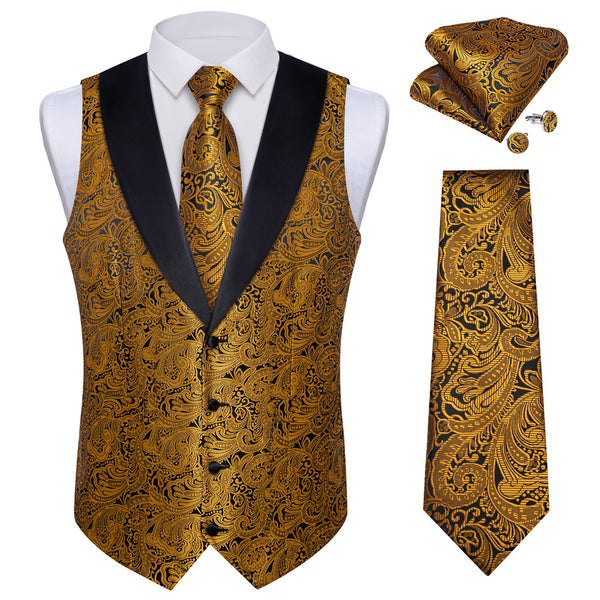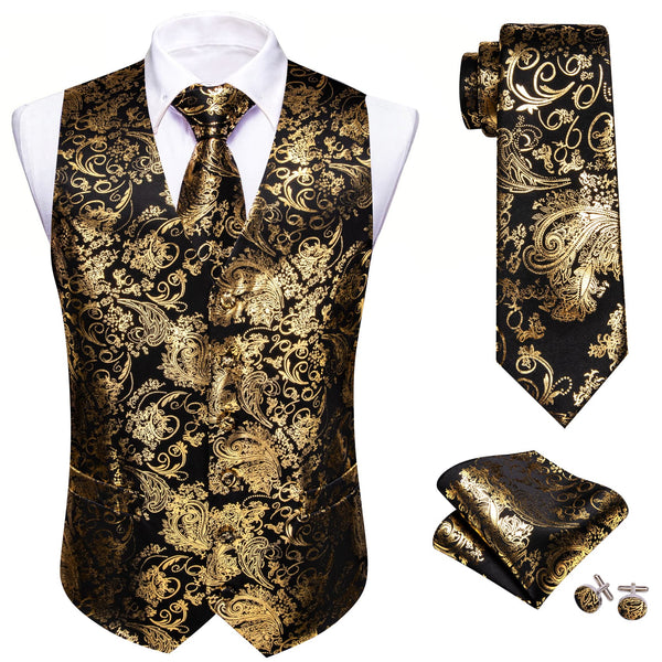 Ties2you Gold Floral Suit Vest Black Business Formal Vest Tie Hanky Cufflinks Set
