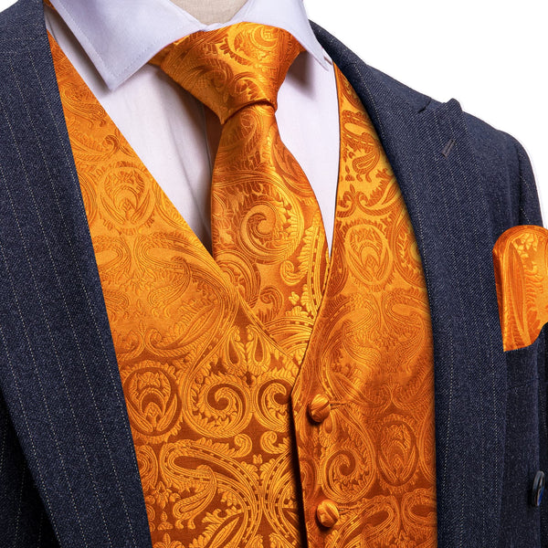 Ties2you Gold Floral Jacquard Waistcoat Shawl Collar Vest Tie Hanky Cufflinks Set for Wedding