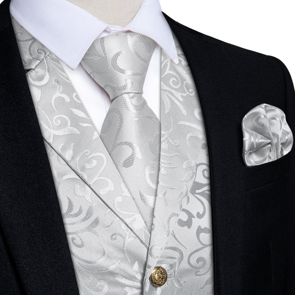Ties2you Silver Waistcoat for Men Collar Floral Silk Vest Tie Hanky Cufflinks Set