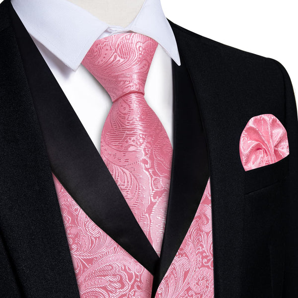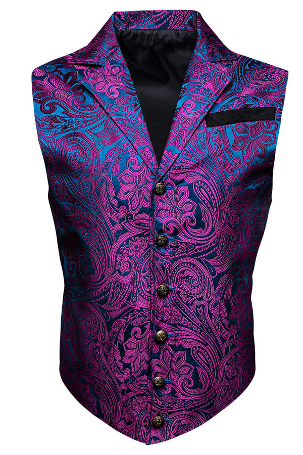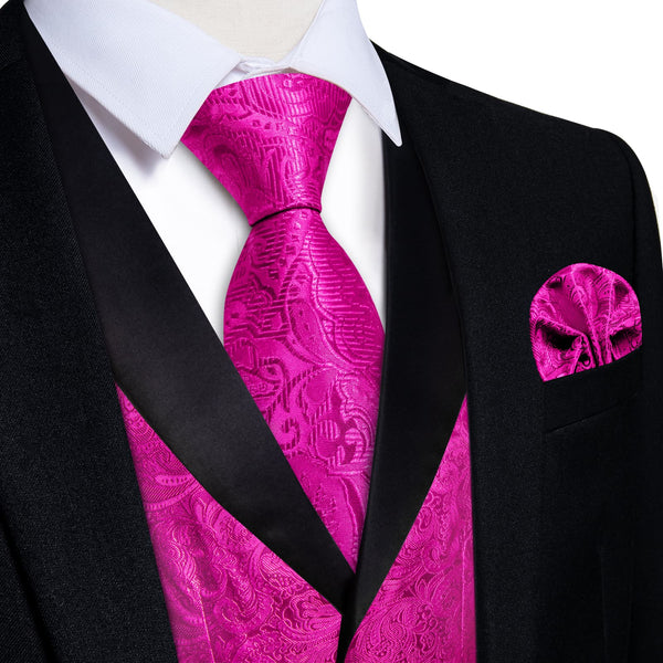 Ties2you Men's Suit Vest Hot Pink Floral Silk Notched Collar Vest