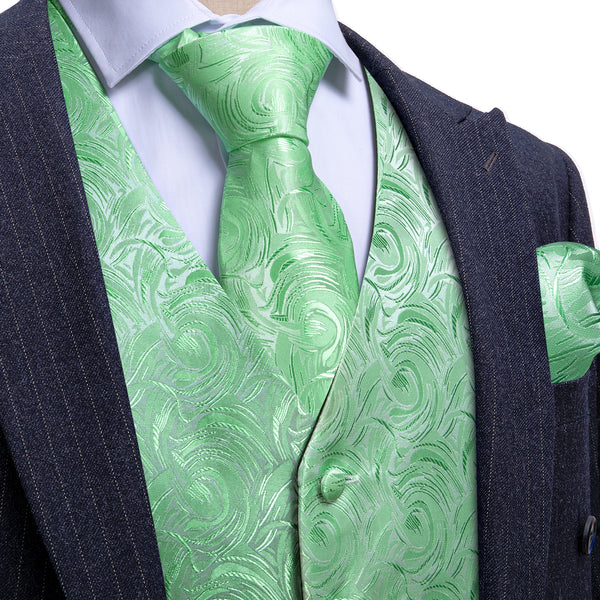 Apple Green Floral Woven Luxury Men's Vest Hanky Cufflinks Tie Set