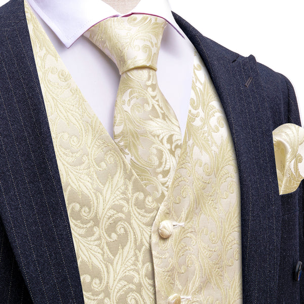 Ties2you Champagne Vest Mens Jacquard Wedding Floral Vest Tie Set