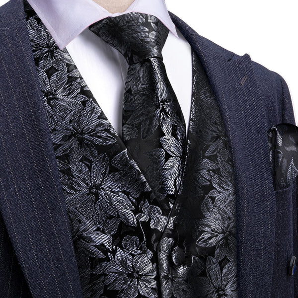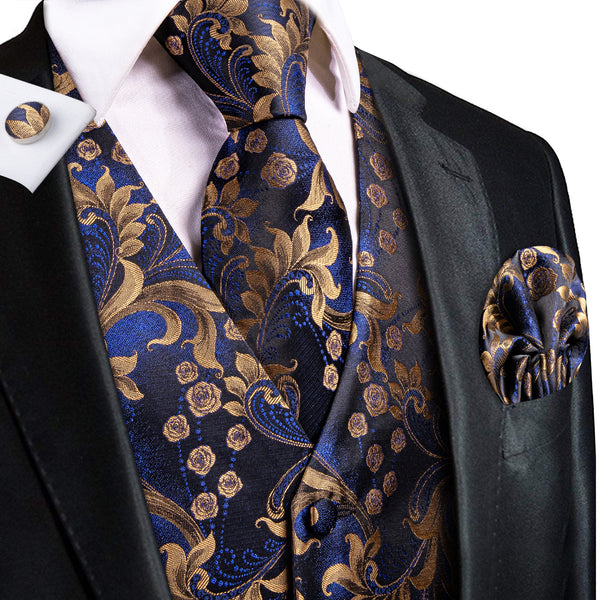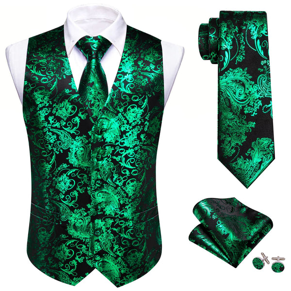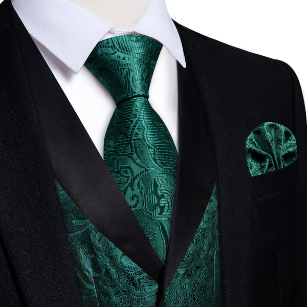 Ties2you Dress Vest Phthalo Green Floral Shawl Collar Silk Mens Waistcoat Tie Set