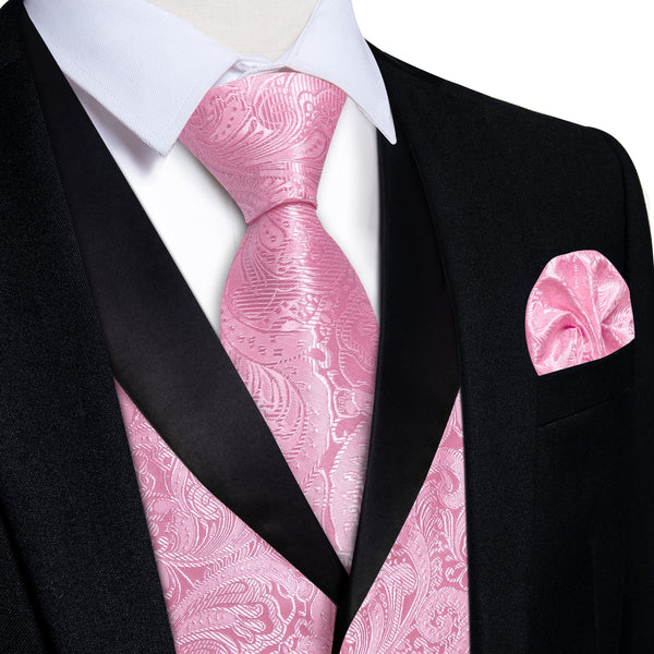 Ties2you Dress Vest Light Pink Floral Shawl Collar Silk Mens Waistcoat Tie Set