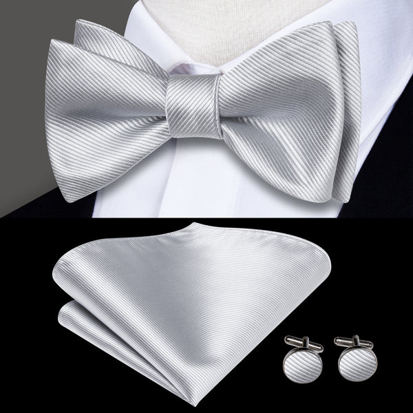 Ties2you Striped Silver Bowtie Pre-tied Grey Bow Tie Pocket Square Cufflinks Set