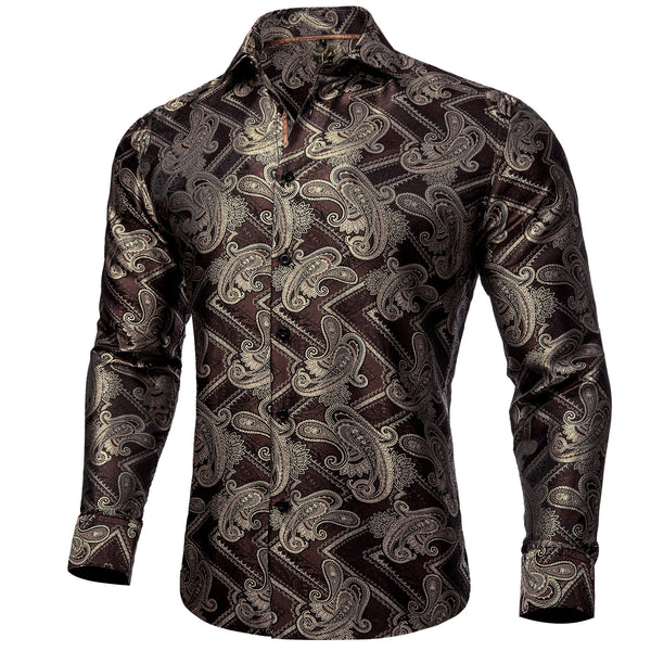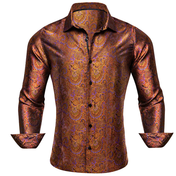 Golden Paisley Silk Men's Long Sleeve Shirt