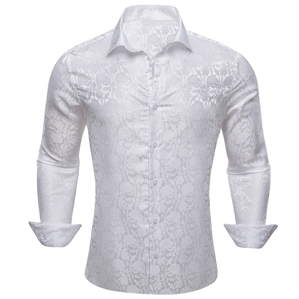 Light Gray Floral Silk Men's Long Sleeve Shirt