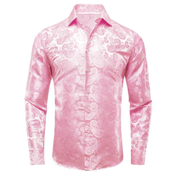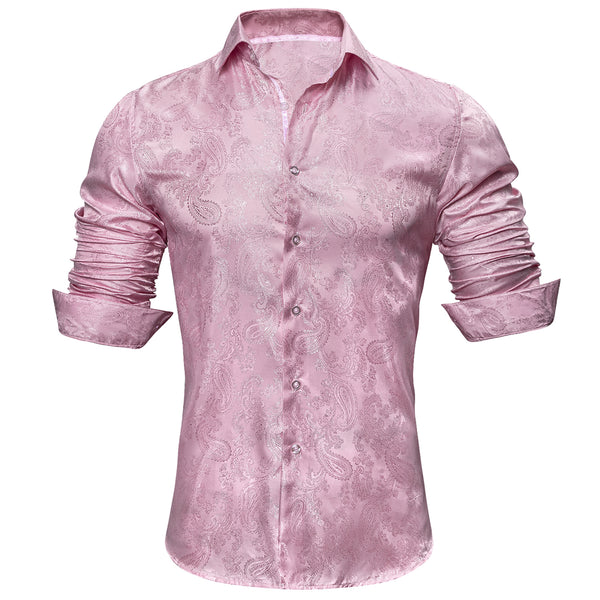 Rose Pink Paisley Men's Long Sleeve Shirt