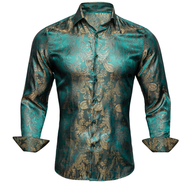Ties2you Green Paisley Dress Shirt Mens Silk Party Long Sleeve Button Down Shirt