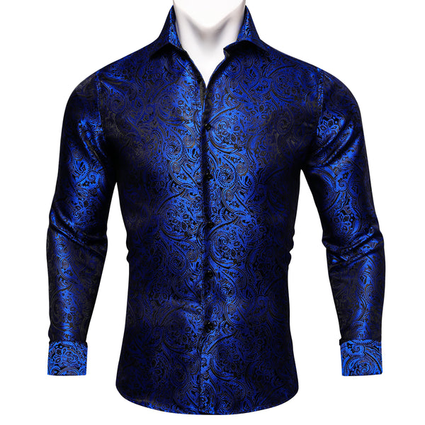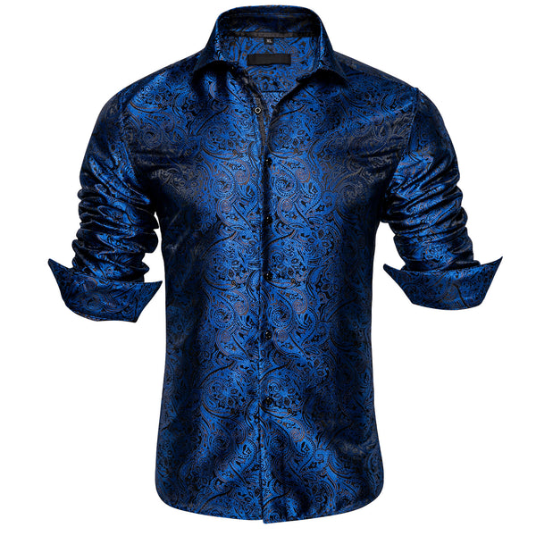 Ties2you Mens Royal Blue Western Shirt Silk Black Paisley Long Sleeve Button Down Shirt