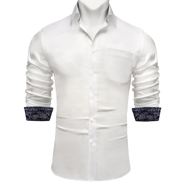 White Satin Solid Silk Men's Long Sleeve Shirt