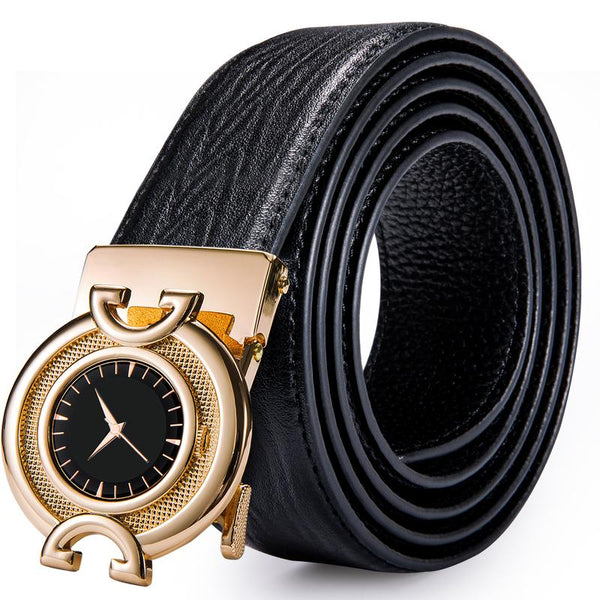 Green Leather Belt with Slide Automatic Buckle Fashion Belt