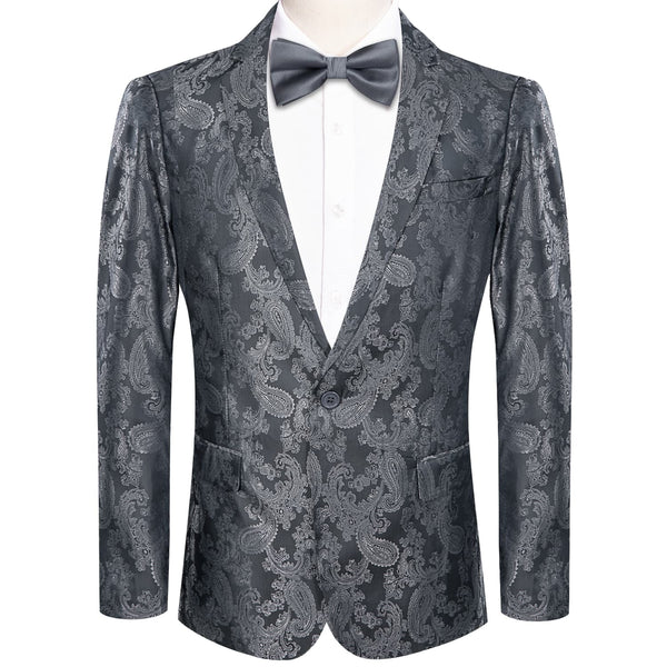 Ties2you Tuxedo Suit Smoke Grey Paisley Shawl Collar Silk Dress Suit for Men
