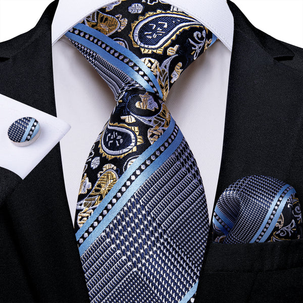 Ties2you Teal Blue Gold Necktie Novelty Jacquard Men's Dinner Tie Set