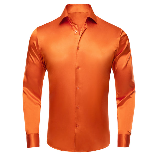 Ties2you Suit Shirt Dark Orange Solid Satin Mens Silk Button Down Shirt