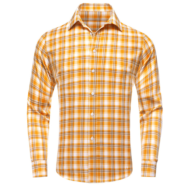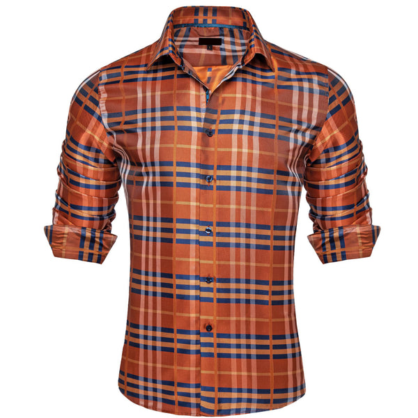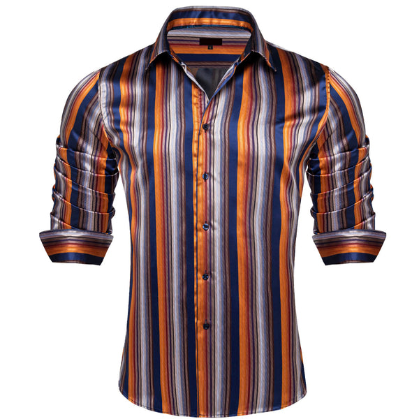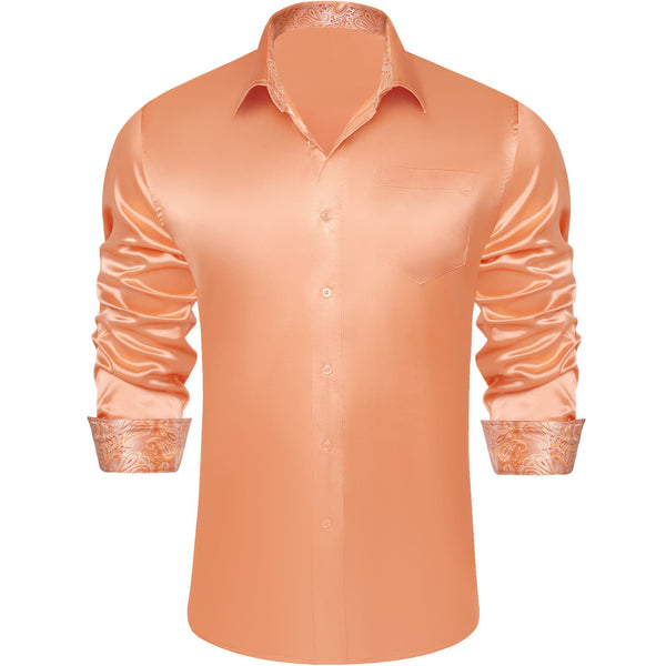 Ties2you Orange Splicing Shirt Mens Silk Long Sleeve Button Down Business Shirt