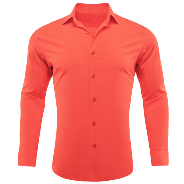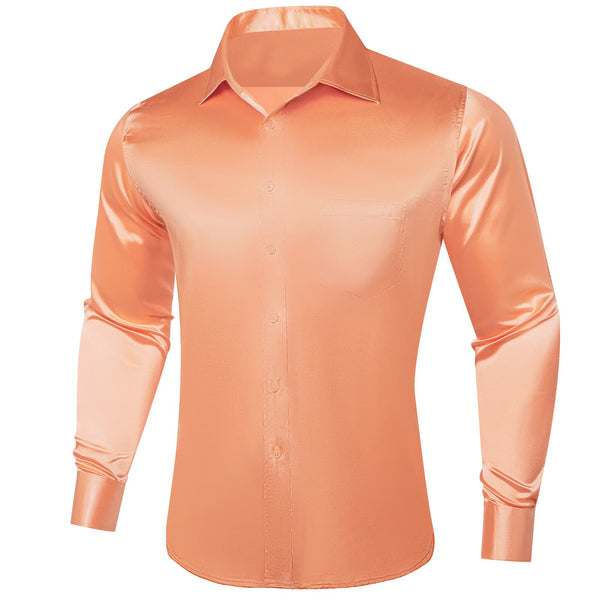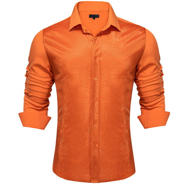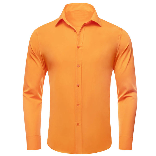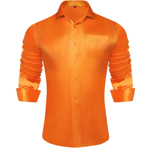Ties2you Button Down Shirt Carrot Orange Solid Men's Silk Long Sleeve Shirt