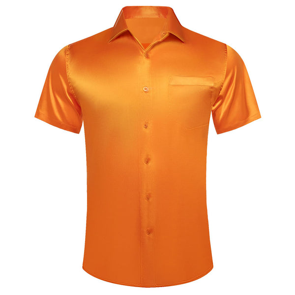 Ties2you Suit Shirt Amber Orange Solid Satin Mens Silk Button Down Shirt