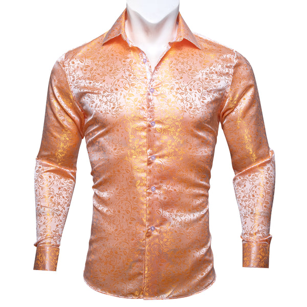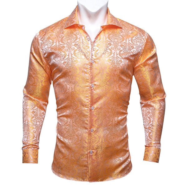 Orange Paisley Silk Men's Casual Business Long Sleeve Suit Shirt