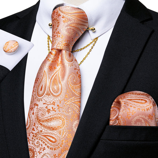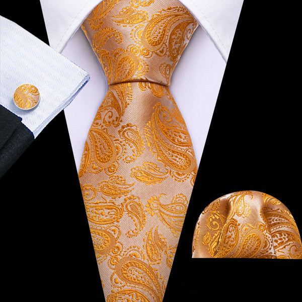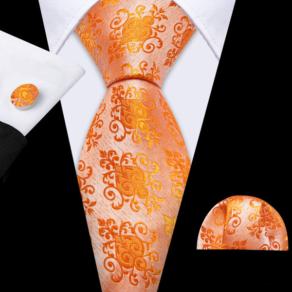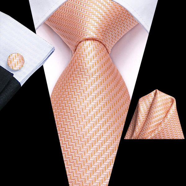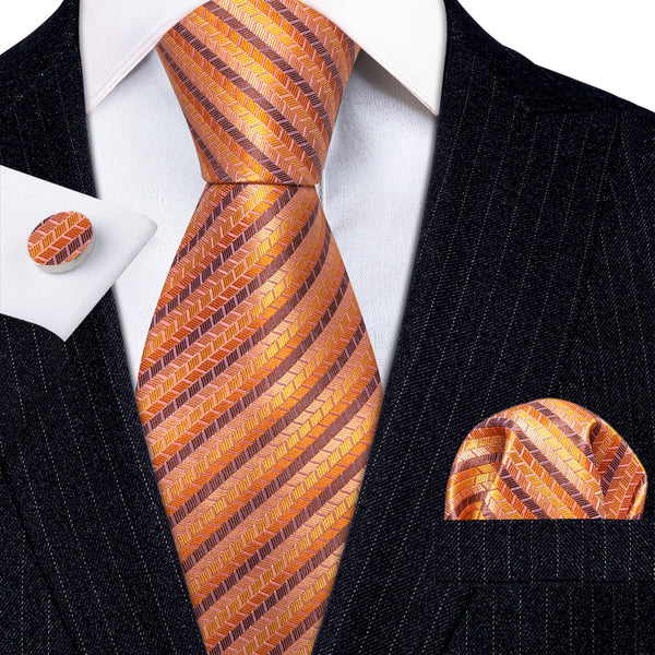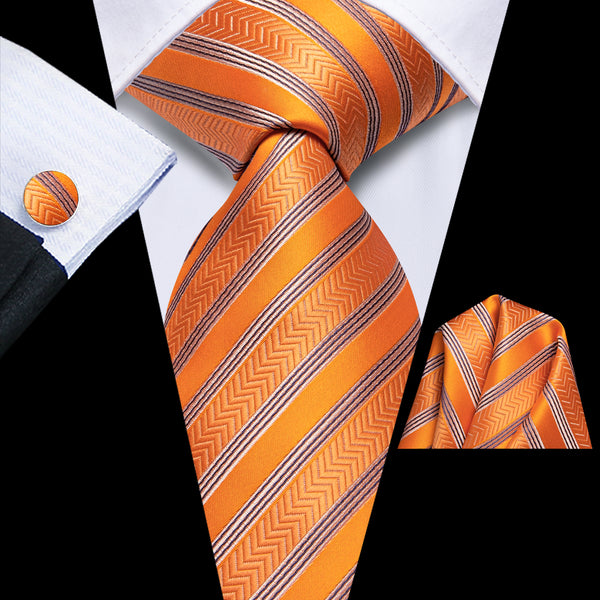 Orange Striped Men's Necktie Pocket Square Cufflinks Set